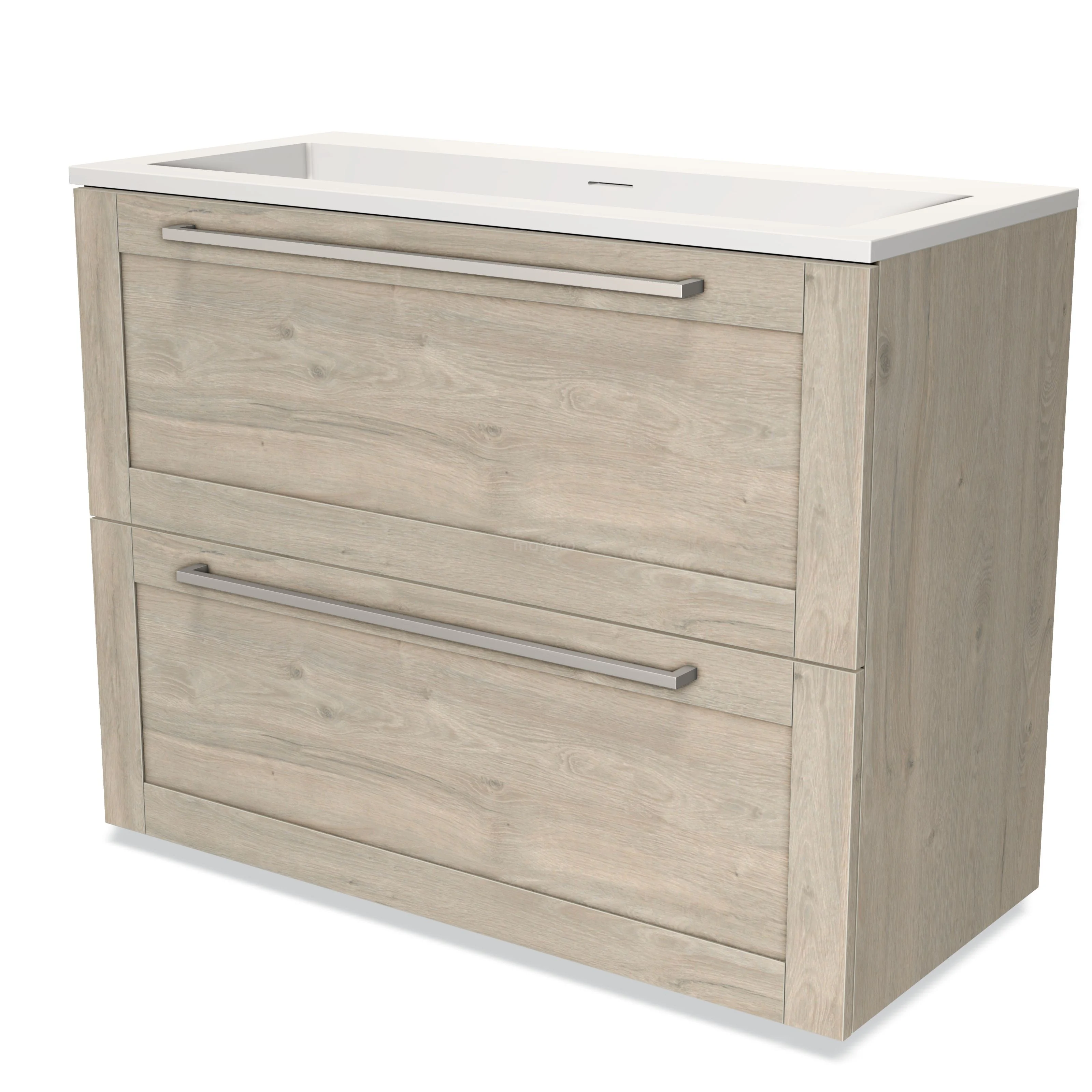 Modulo Vanity units with basin | 100 cm Light grey oak Frame front Solid surface 2 stacked drawers under each other