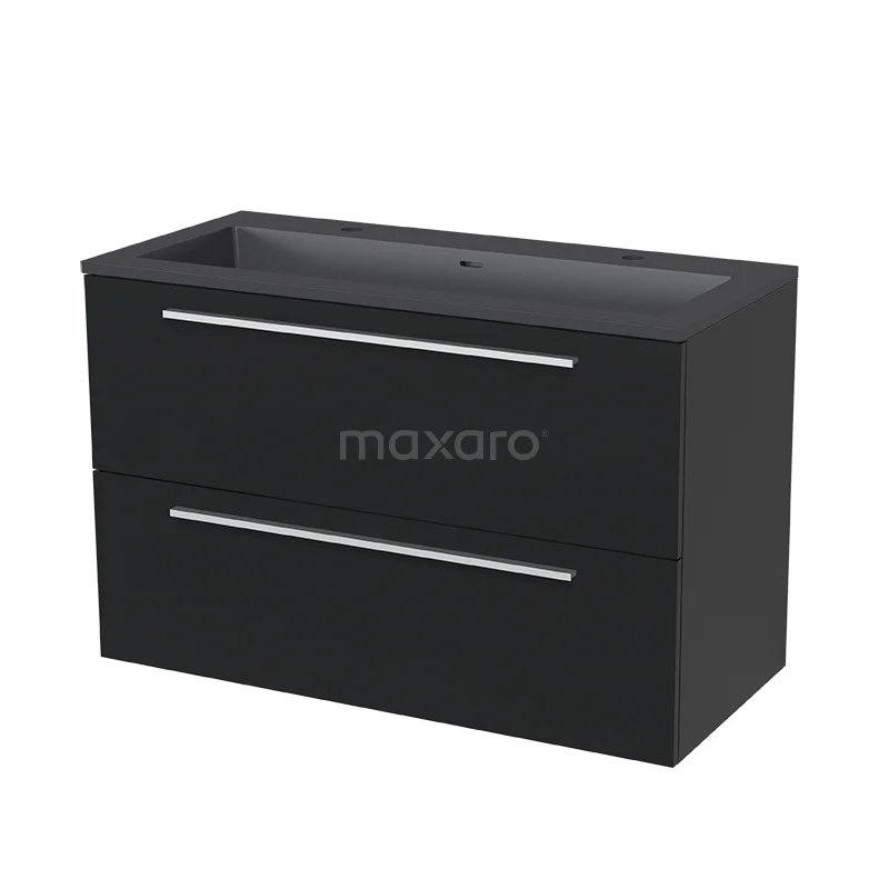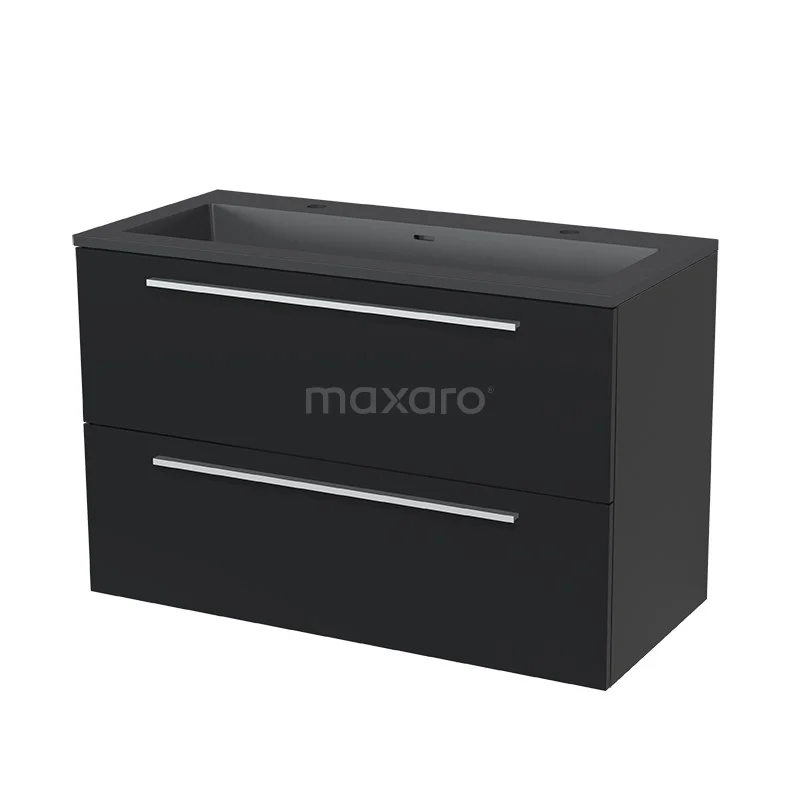 Modulo Vanity units with basin | 100 cm Matte black Flat front Quartz 2 Stacked drawers