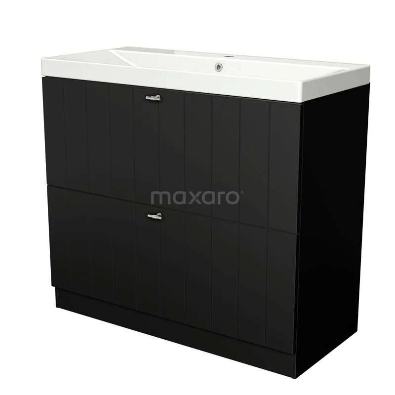 Modulo Vanity units with basin | 100 cm Matte black Slat front Ceramic 2 high drawers standing drawers under each other