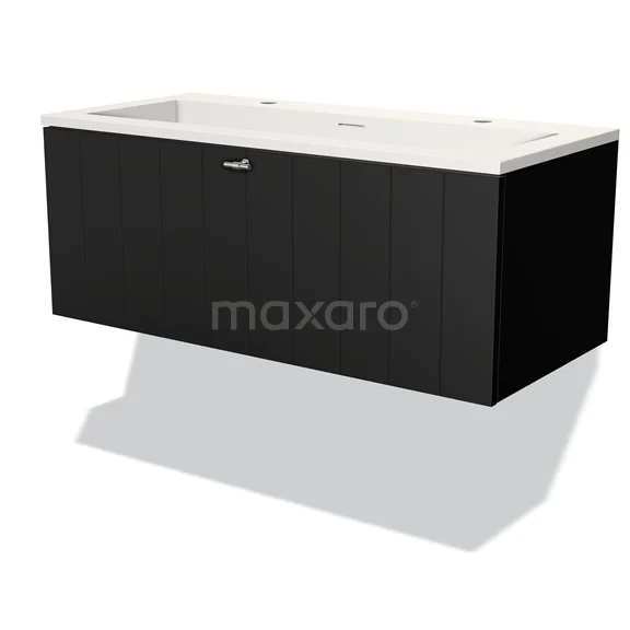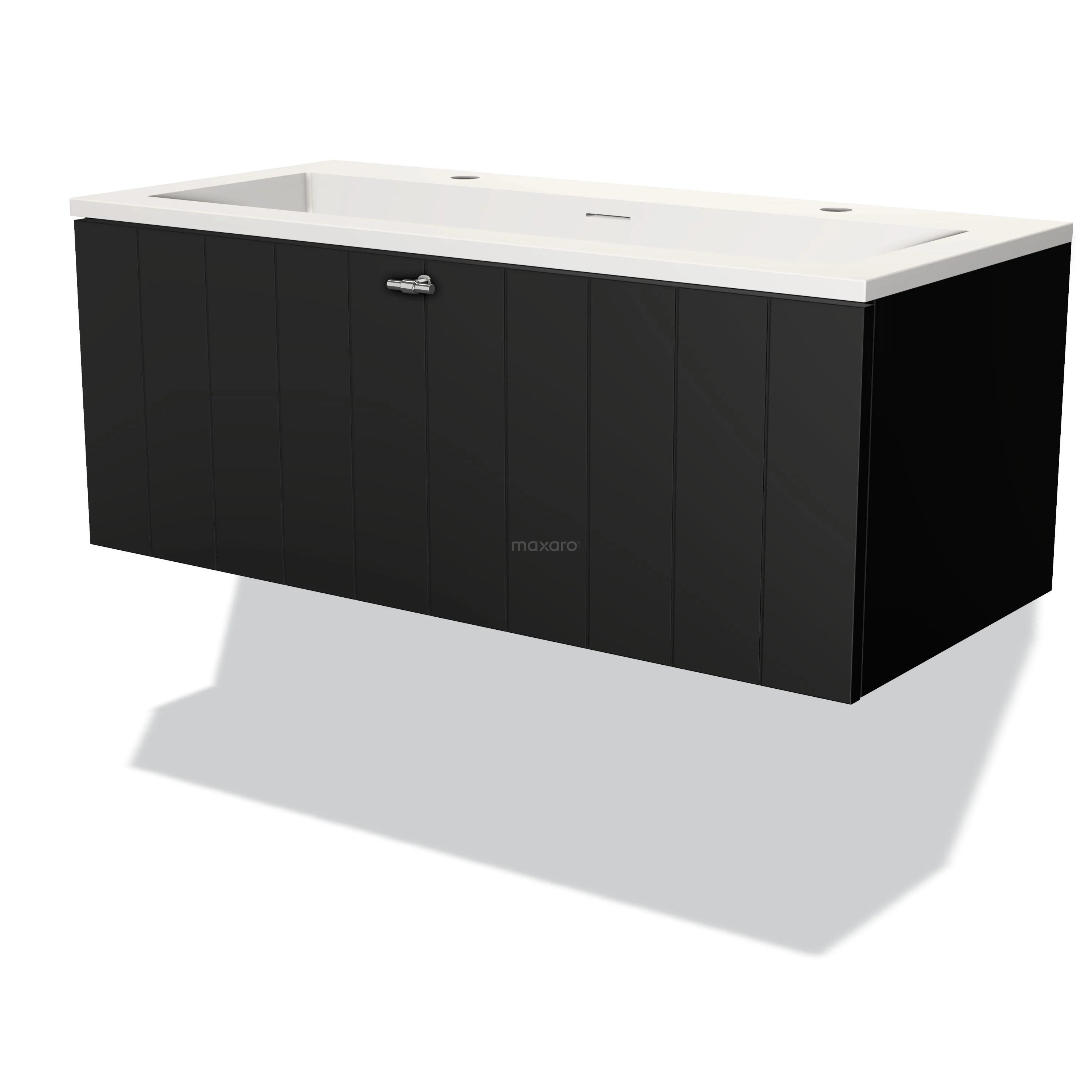 Modulo Vanity units with basin | 100 cm Matte black Slat front Solid surface 1 drawer