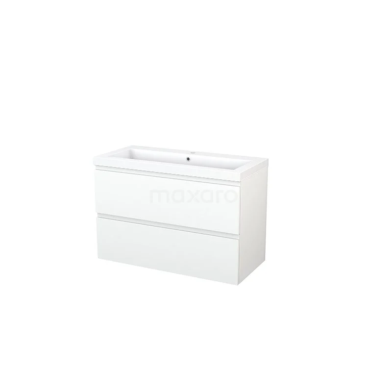 Modulo+ Bathroom furniture with sink | 100 cm Matte white Handle-less front Mineral marble 2 Stacked drawers