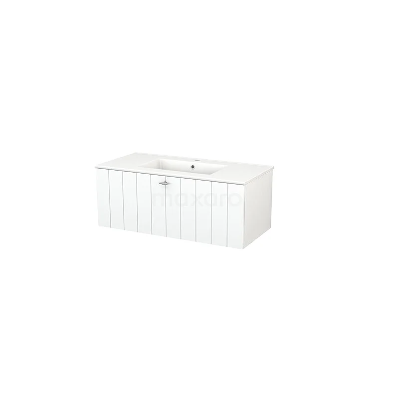 Modulo+ Vanity units with basin | 100 cm Matte white Slat front Ceramic 1 drawer