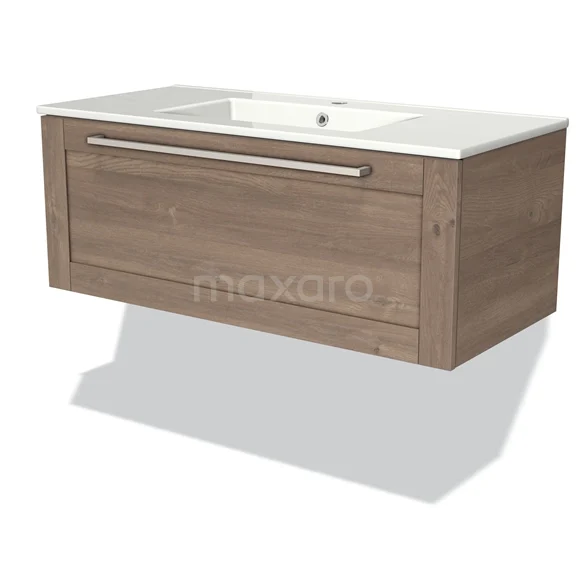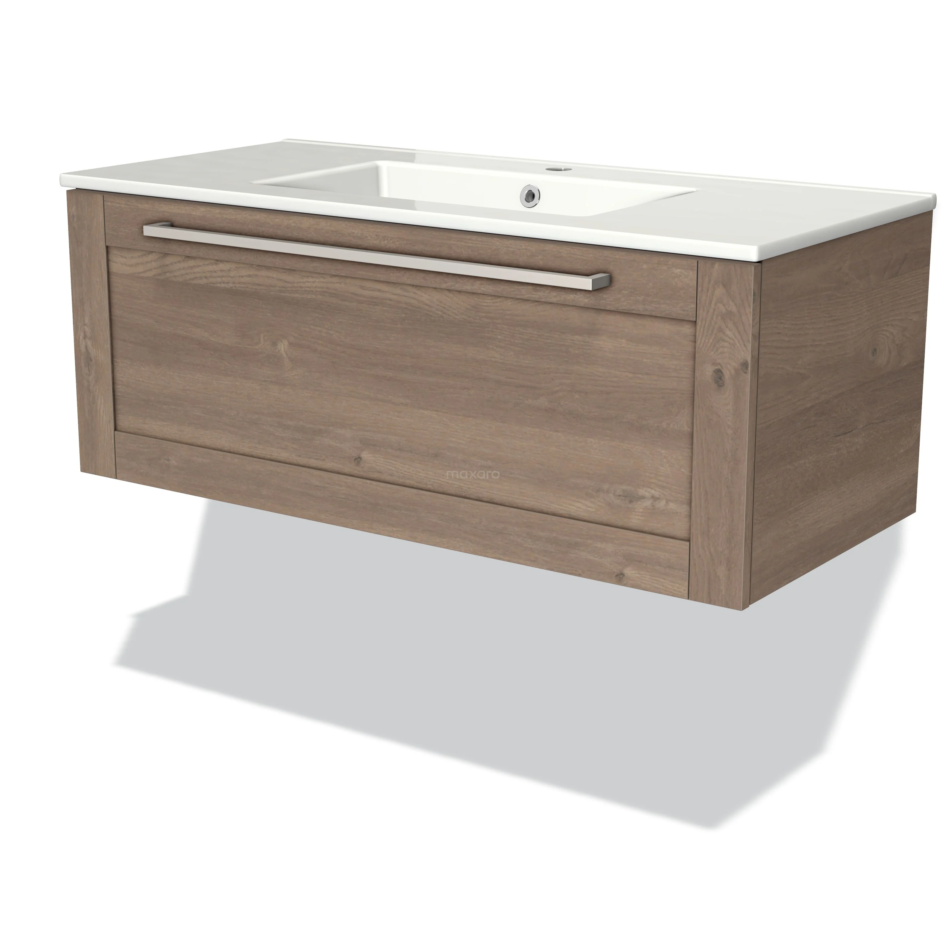 Modulo Vanity units with basin | 100 cm Mid brown oak Frame front Ceramic 1 drawer