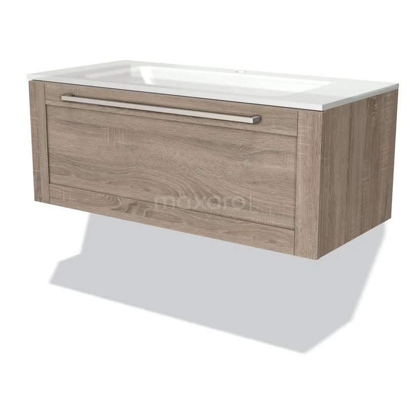 Stylish design The stylish design makes this bathroom unit the eye-catcher of your bathroom. The base cabinet features a framed front and has an Oak finish. This beautiful oak look creates a warm atmosphere in your bathroom interior. In addition, the framed front adds a classic touch. You need to joint the handle yourself. It is available in different colours and shapes.