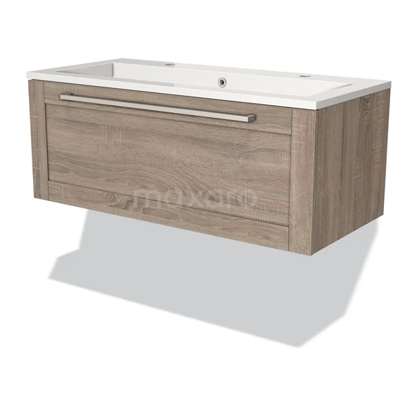 Modulo Vanity units with basin | 100 cm Oak Frame front Mineral marble 1 drawer
