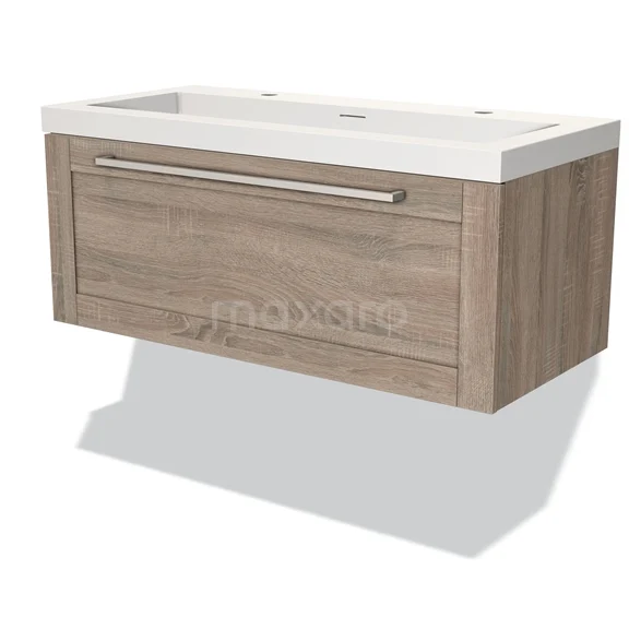 Modulo Vanity units with basin | 100 cm Oak Frame front Solid surface 1 drawer