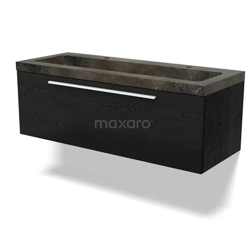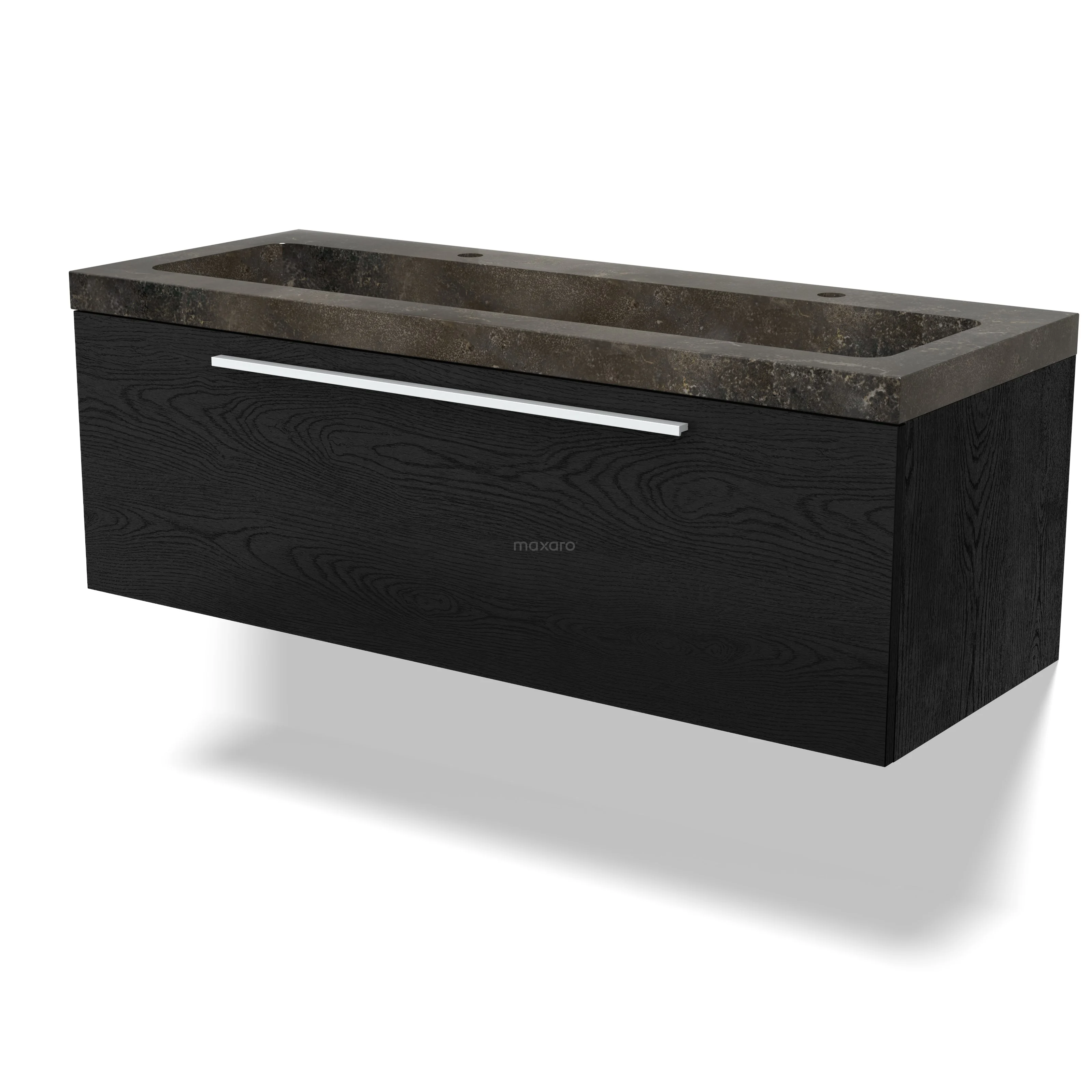 Modulo Vanity units with basin | 120 cm Black oak Flat front Natural stone 1 drawer