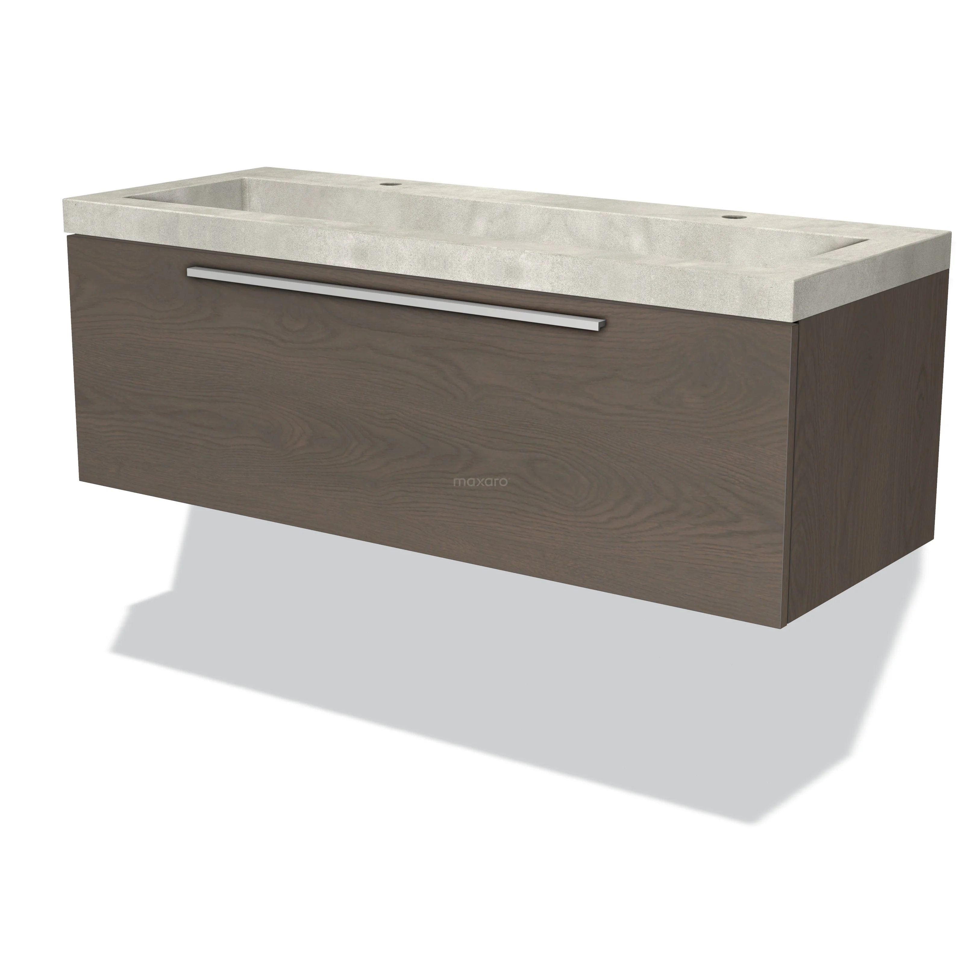 Modulo Vanity units with basin | 120 cm Dark brown oak Flat front Concrete 1 drawer