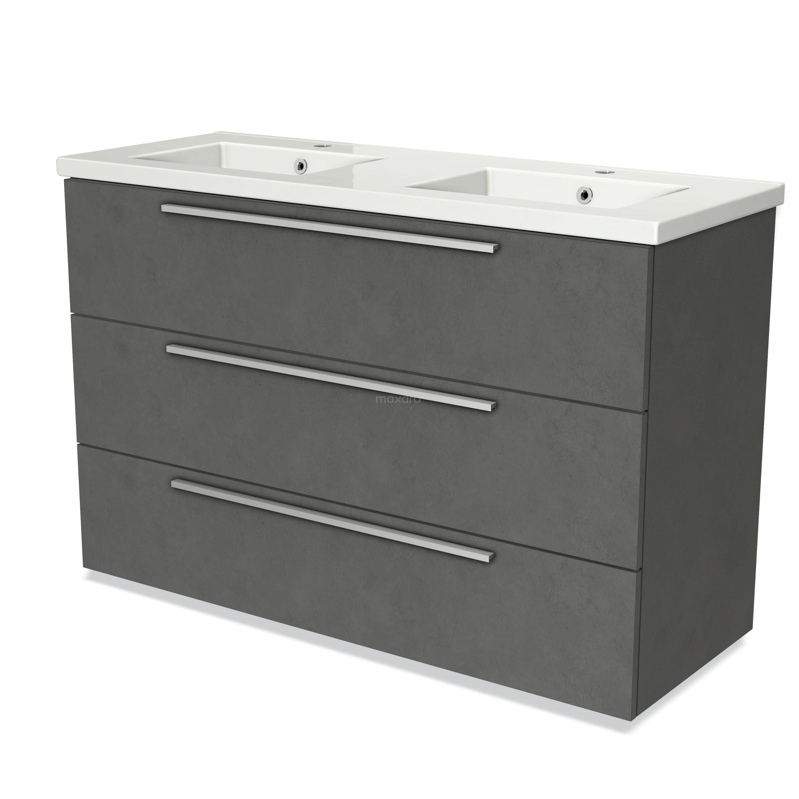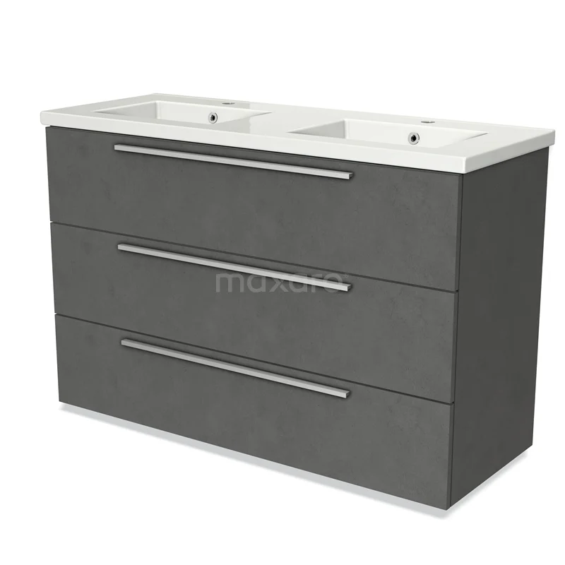 Modulo Vanity units with basin | 120 cm Dark grey concrete Flat front Ceramic 3 drawers