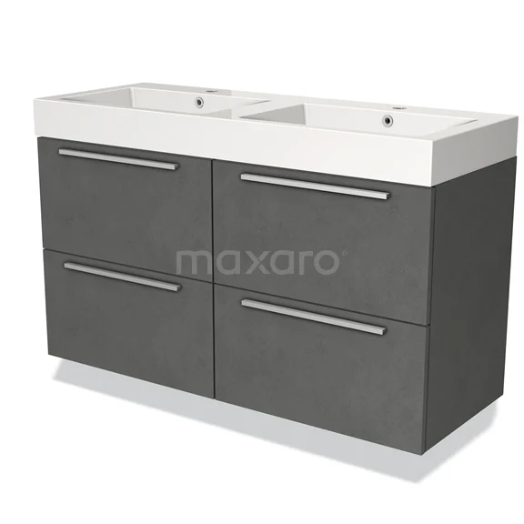 Modulo Bathroom furniture with sink | 120 cm Dark grey concrete Flat front Mineral marble 4 drawers