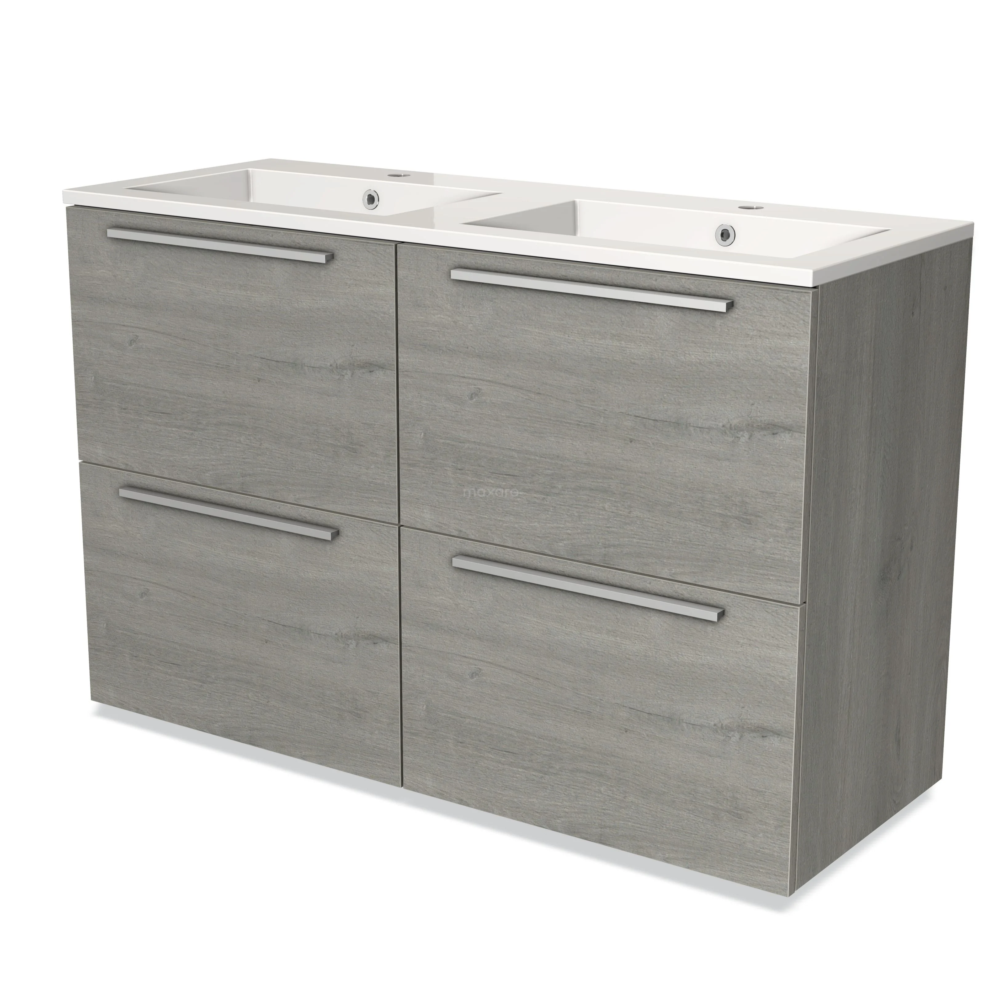 Modulo Vanity units with basin | 120 cm Grey oak Flat front Mineral marble 4 high drawers