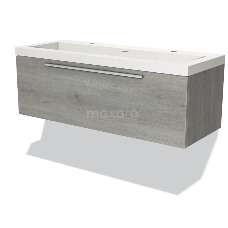 Modulo Vanity units with basin | 120 cm Grey oak Flat front Solid surface 1 drawer