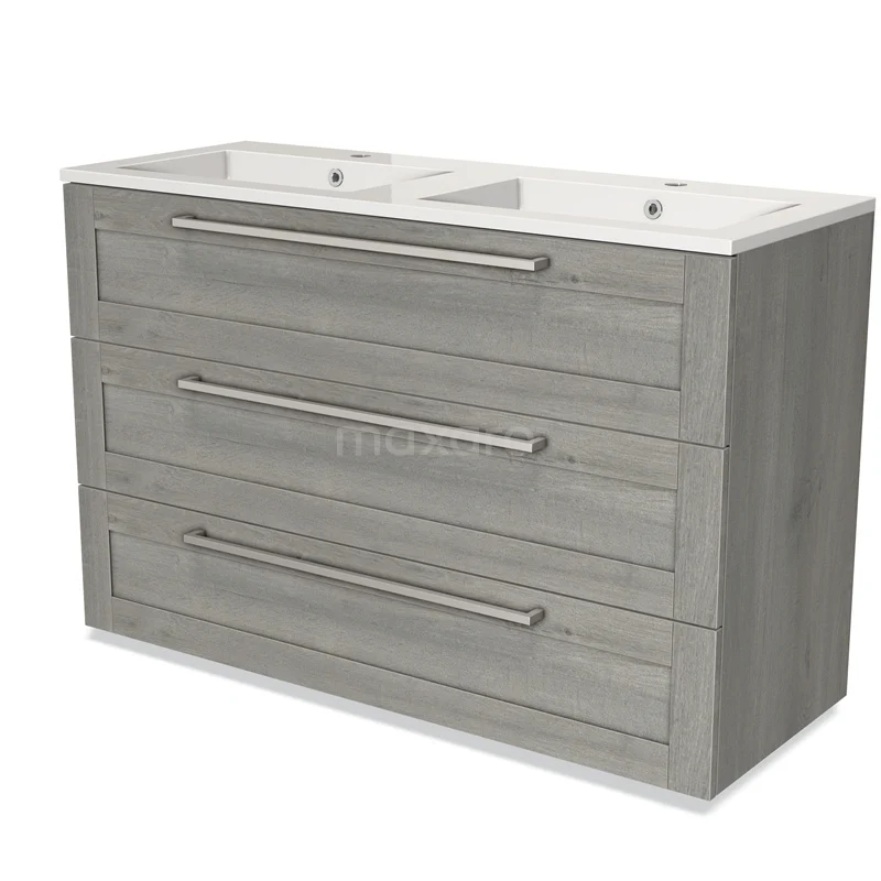 Modulo Vanity units with basin | 120 cm Grey oak Frame front Mineral marble 3 drawers