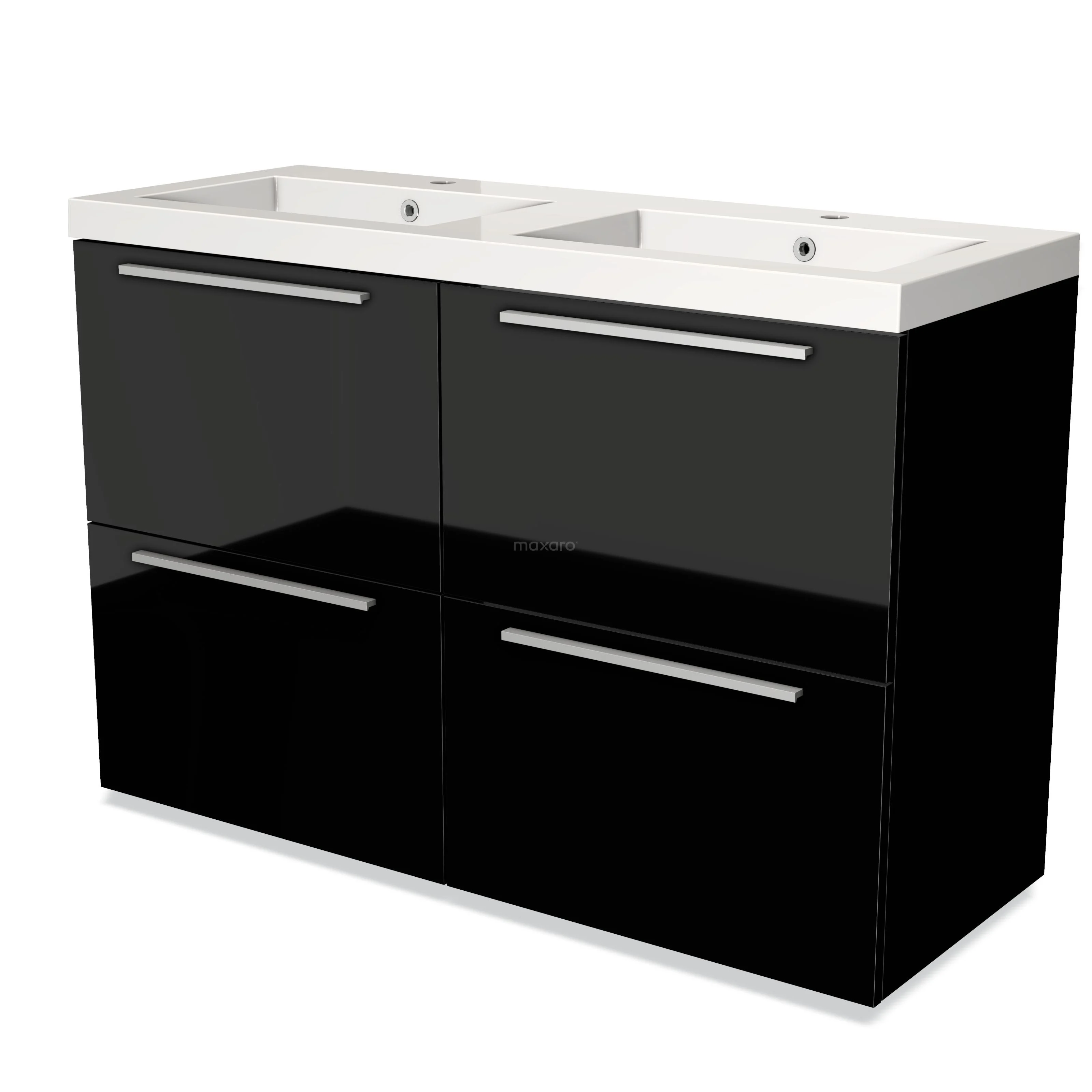 Modulo Vanity units with basin | 120 cm High-gloss black Flat front Mineral marble 4 high drawers