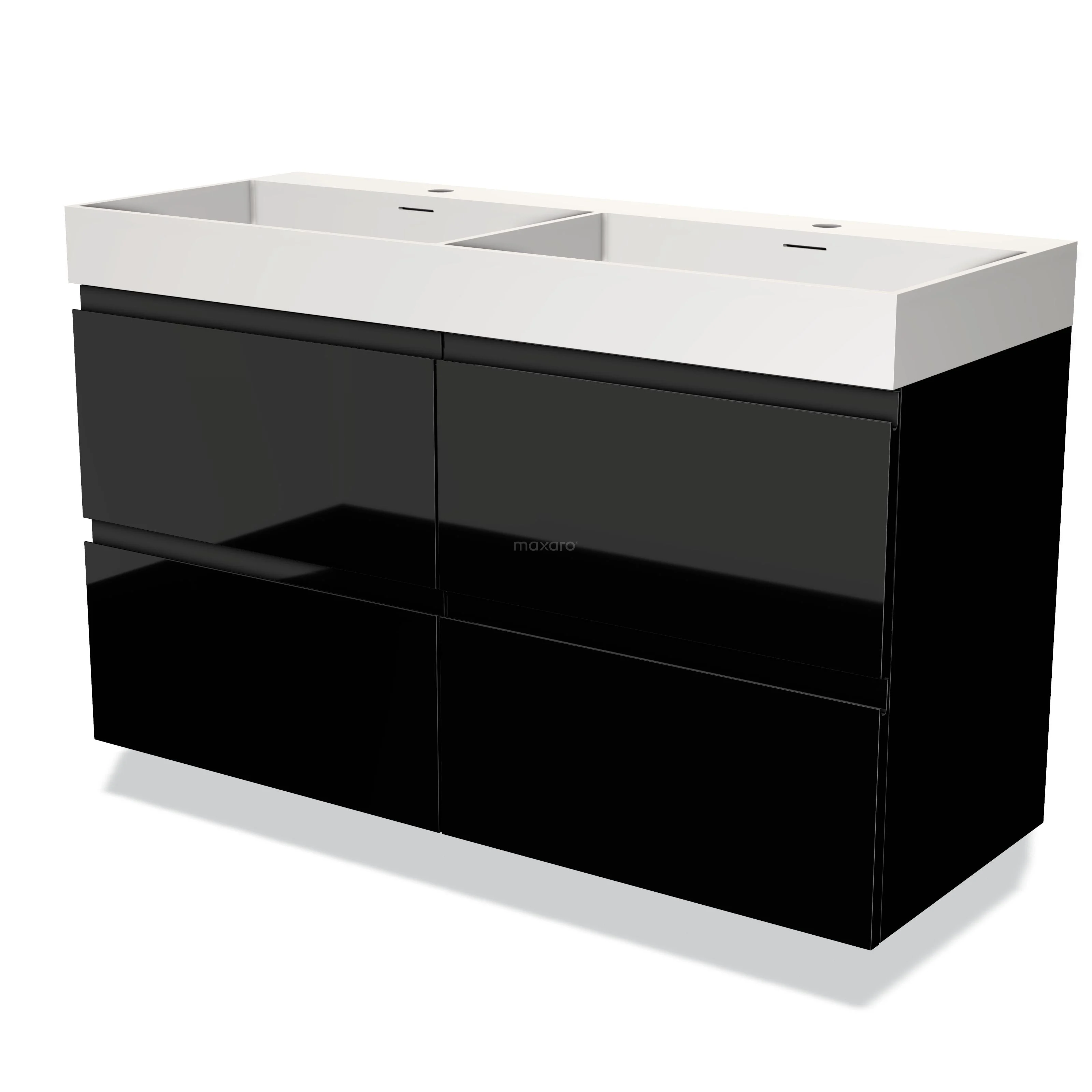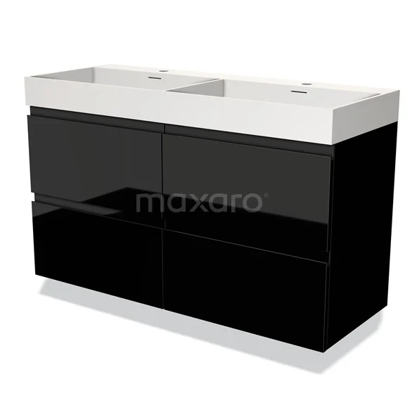Modulo Vanity units with basin | 120 cm High-gloss black Handle-less front Solid surface 4 drawers