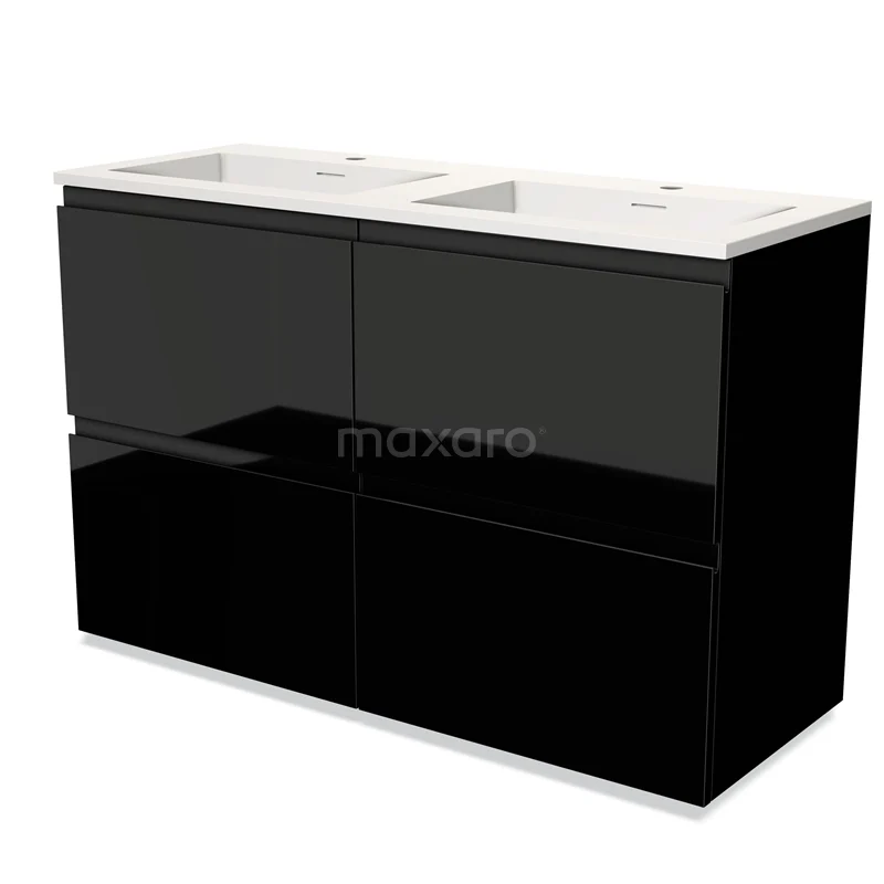 Modulo Vanity units with basin | 120 cm High-gloss black Handle-less front Solid surface 4 high drawers