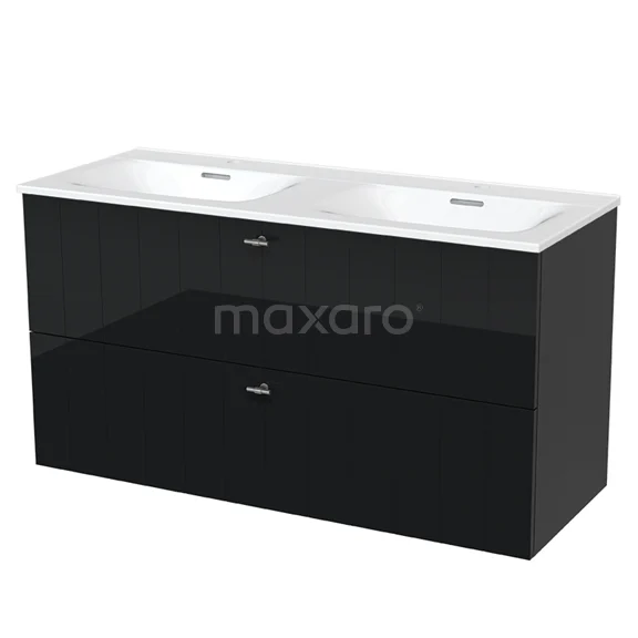 Modulo Vanity units with basin | 120 cm High-gloss black Slat front Ceramic 2 Stacked drawers
