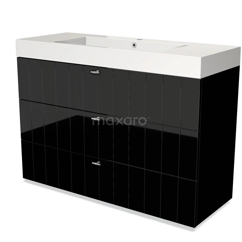 Modulo Vanity units with basin | 120 cm High-gloss black Slat front Mineral marble 3 drawers