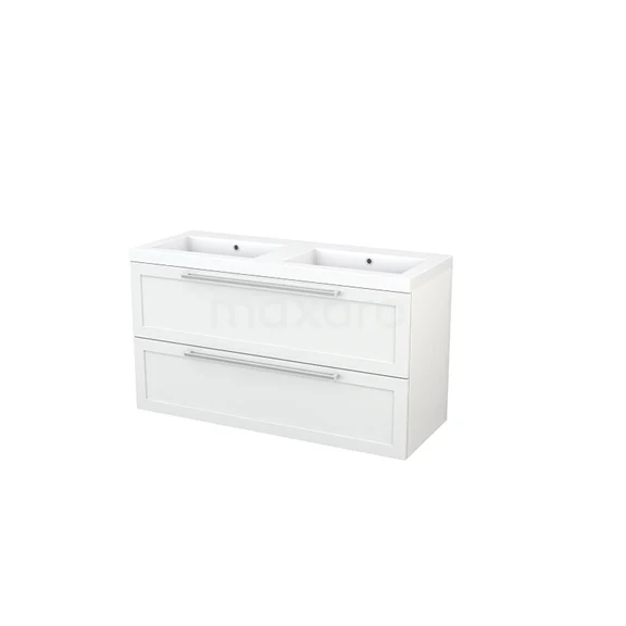 Modulo+ Vanity units with basin | 120 cm High-gloss white Frame front Mineral marble 2 Stacked drawers