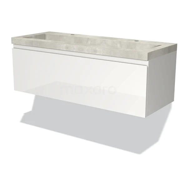 Modulo Vanity units with basin | 120 cm High-gloss white Handle-less front Concrete 1 drawer