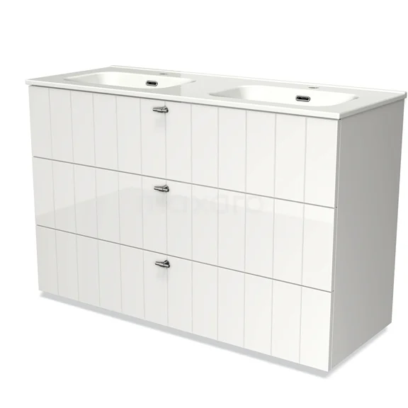 Modulo Vanity units with basin | 120 cm High-gloss white Slat front Ceramic 3 drawers