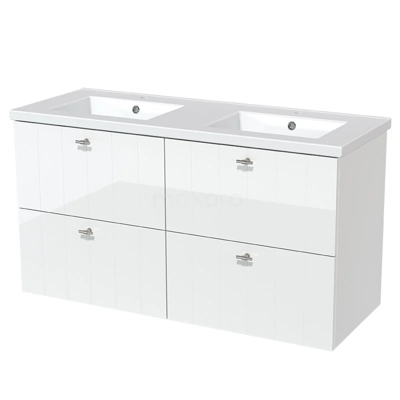 Modulo Vanity units with basin | 120 cm High-gloss white Slat front Ceramic 4 drawers