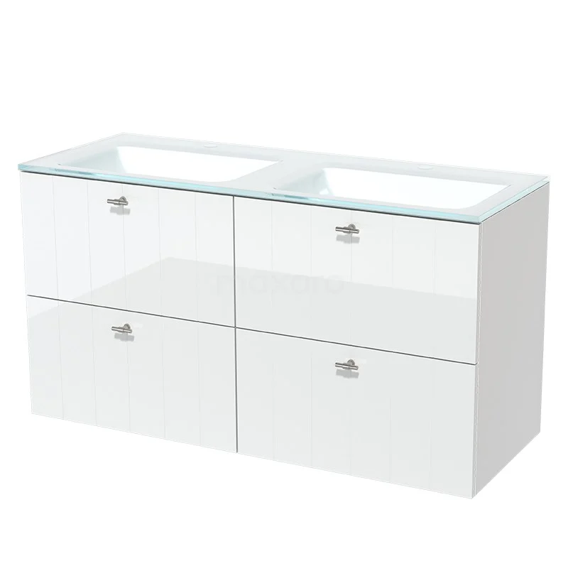 Modulo Vanity units with basin | 120 cm High-gloss white Slat front Glass 4 drawers