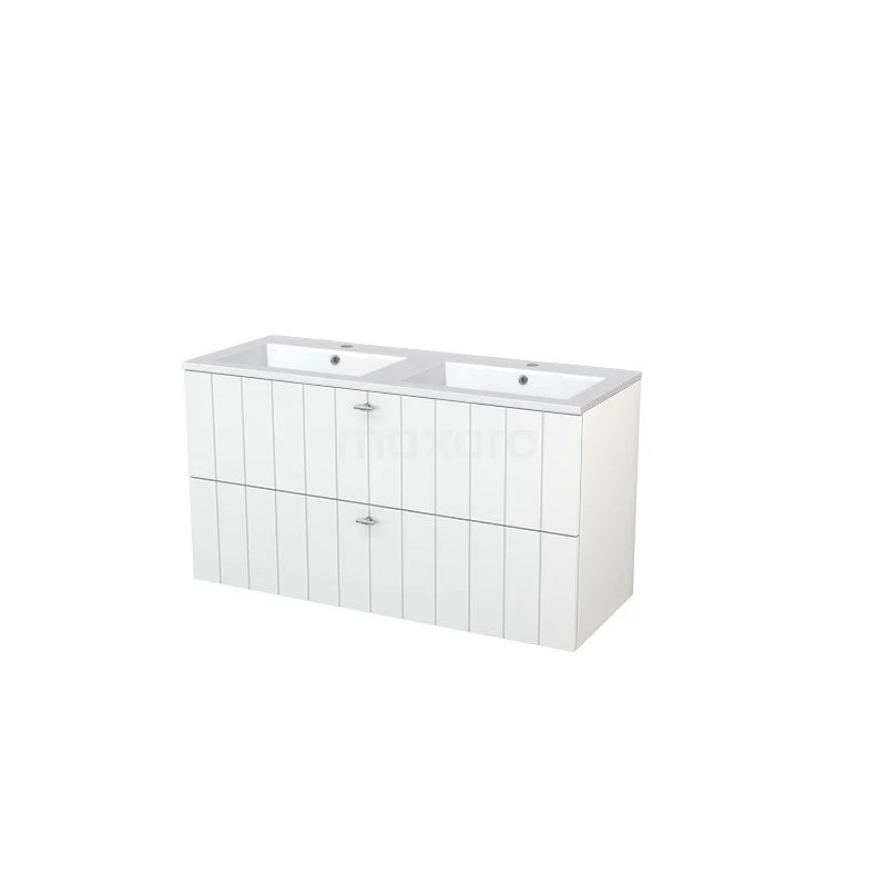 Modulo+ Vanity units with basin | 120 cm High-gloss white Slat front Mineral marble 2 Stacked drawers
