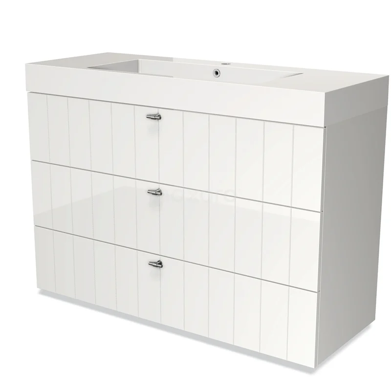 Modulo Vanity units with basin | 120 cm High-gloss white Slat front Mineral marble 3 drawers