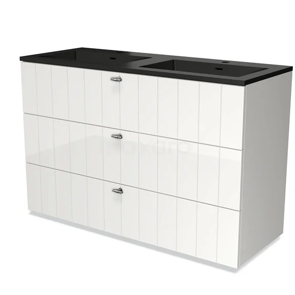 Modulo Vanity units with basin | 120 cm High-gloss white Slat front Quartz 3 drawers