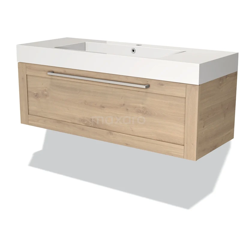 Modulo Vanity units with basin | 120 cm Light brown oak Frame front Mineral marble 1 drawer