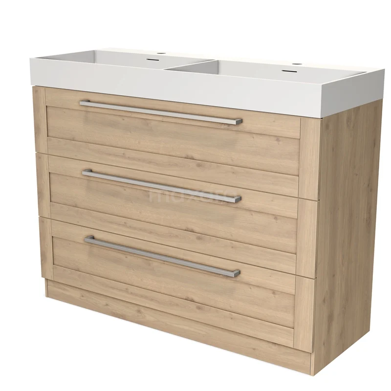Modulo Vanity units with basin | 120 cm Light brown oak Frame front Solid surface 3 standing drawers