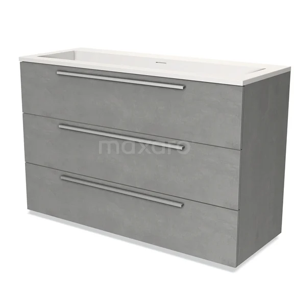Modulo Vanity units with basin | 120 cm Light grey concrete Flat front Solid surface 3 drawers