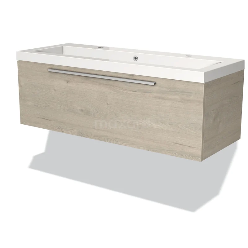 Modulo Vanity units with basin | 120 cm Light grey oak Flat front Mineral marble 1 drawer