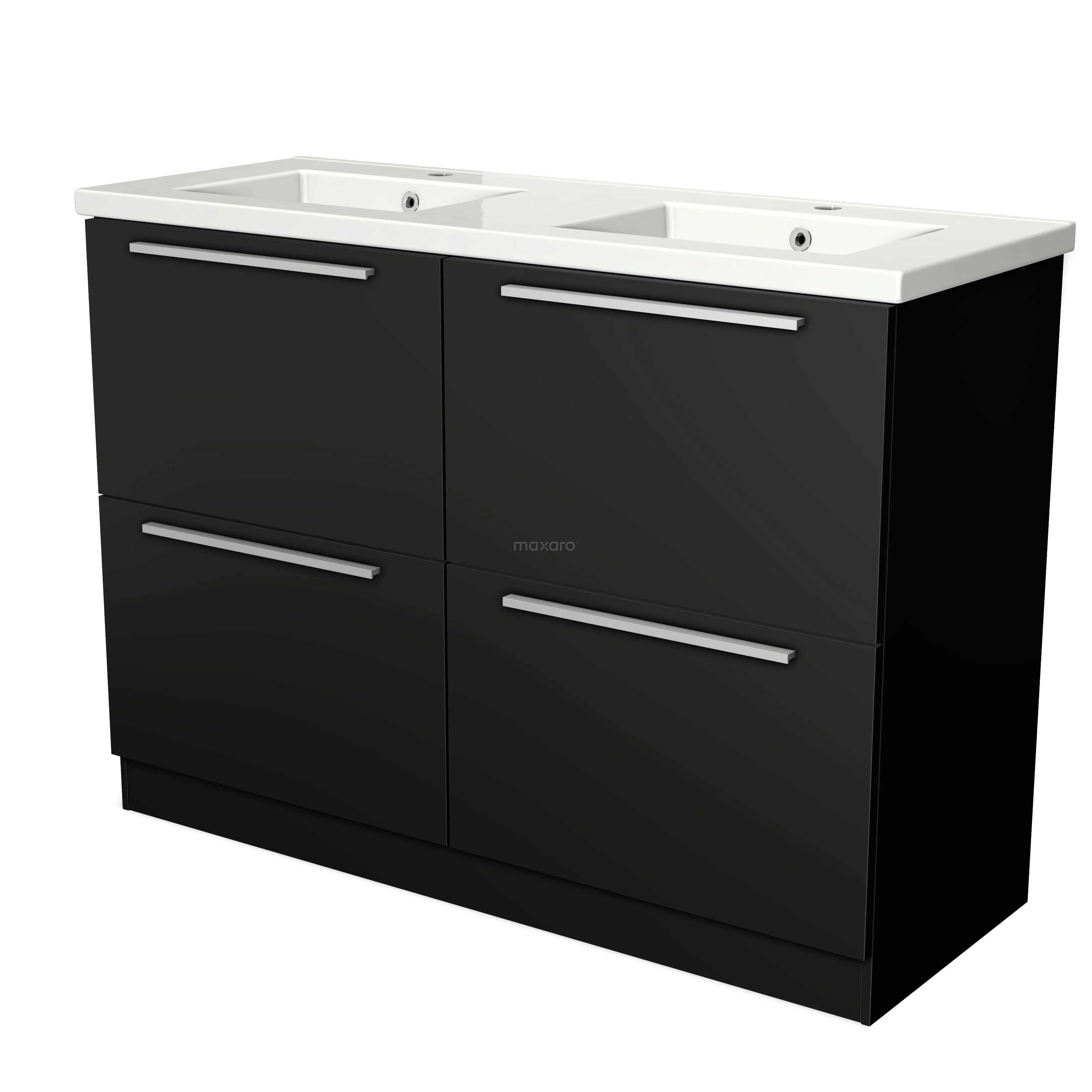 Modulo Vanity units with basin | 120 cm Matte black Flat front Ceramic 4 standing high drawers