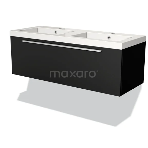Modulo Bathroom furniture with sink | 120 cm Matte black Flat front Mineral marble 1 drawer