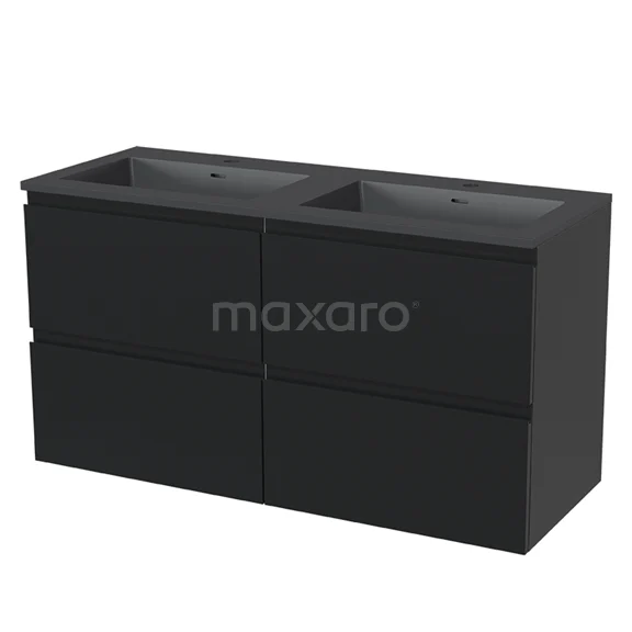 Modulo Vanity units with basin | 120 cm Matte black Handle-less front Quartz 4 drawers