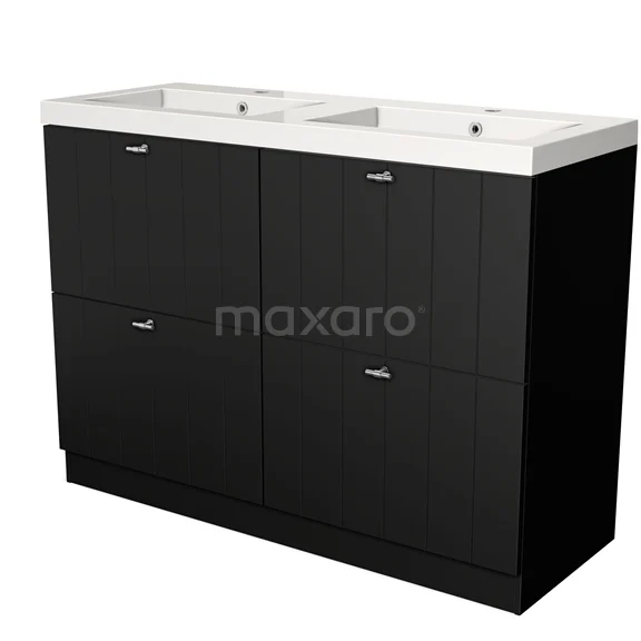 Modulo Vanity units with basin | 120 cm Matte black Slat front Mineral marble 4 standing high drawers