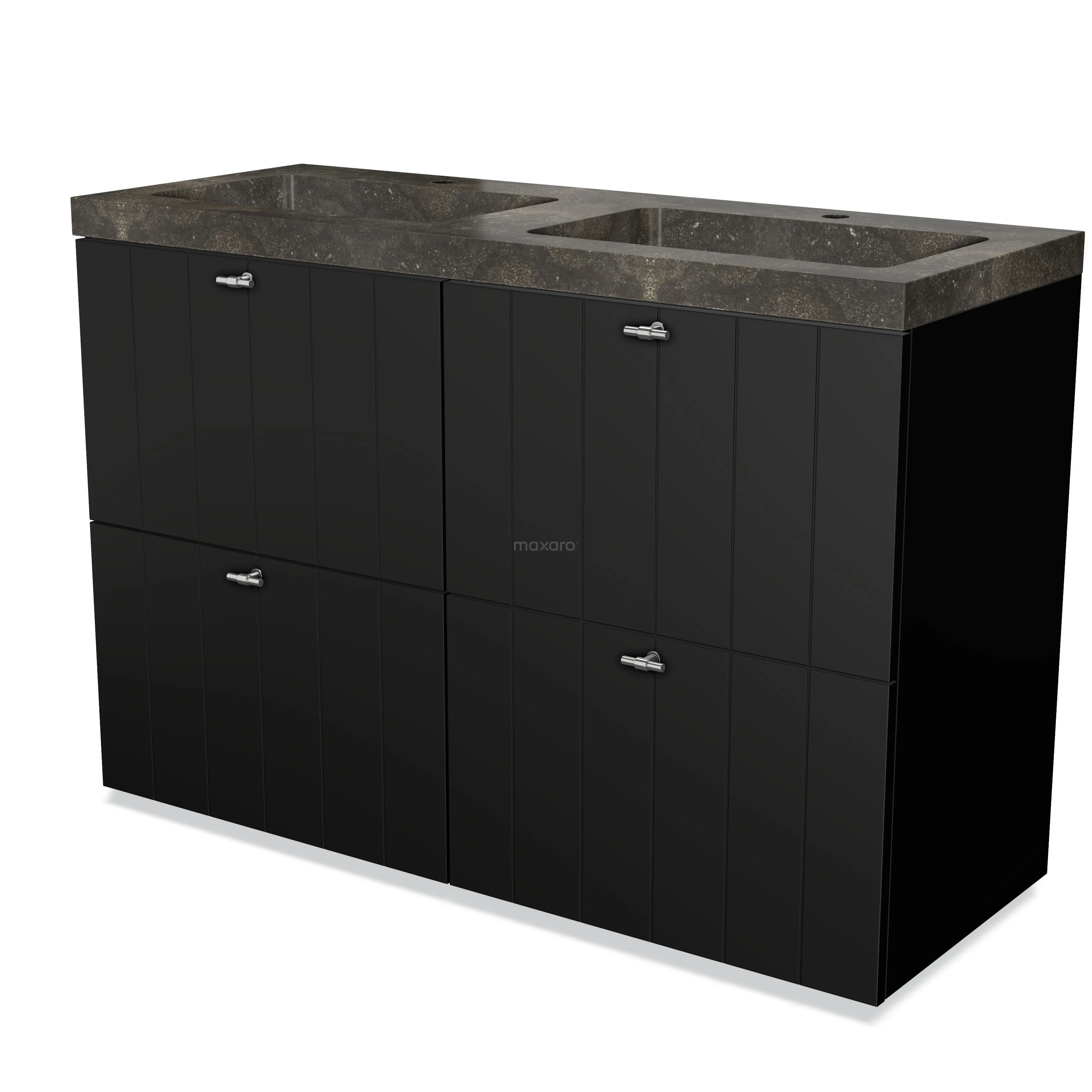 Modulo Vanity units with basin | 120 cm Matte black Slat front Natural stone 4 high drawers