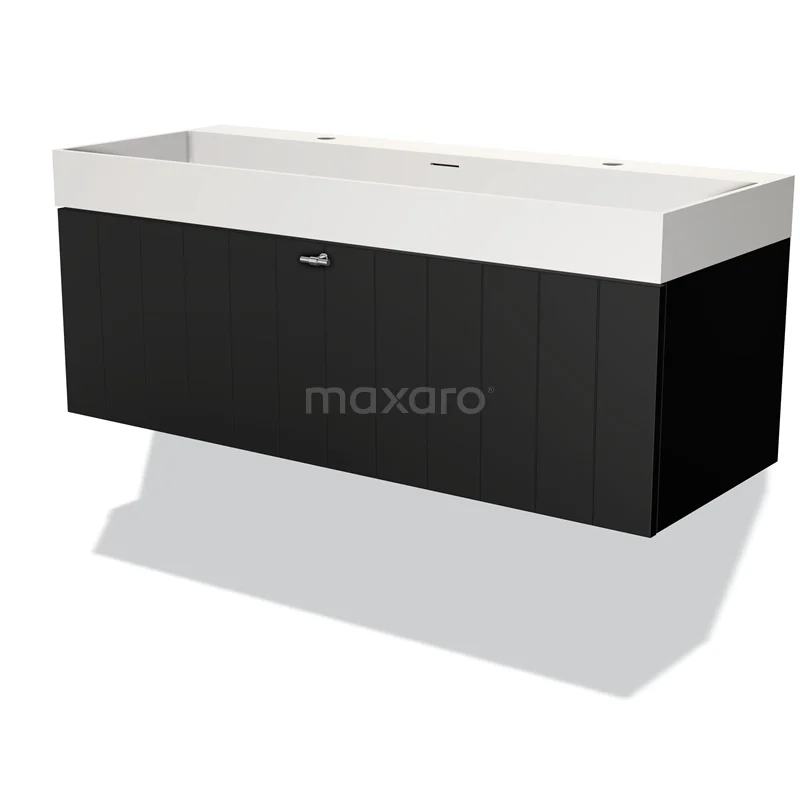 Modulo Vanity units with basin | 120 cm Matte black Slat front Solid surface 1 drawer
