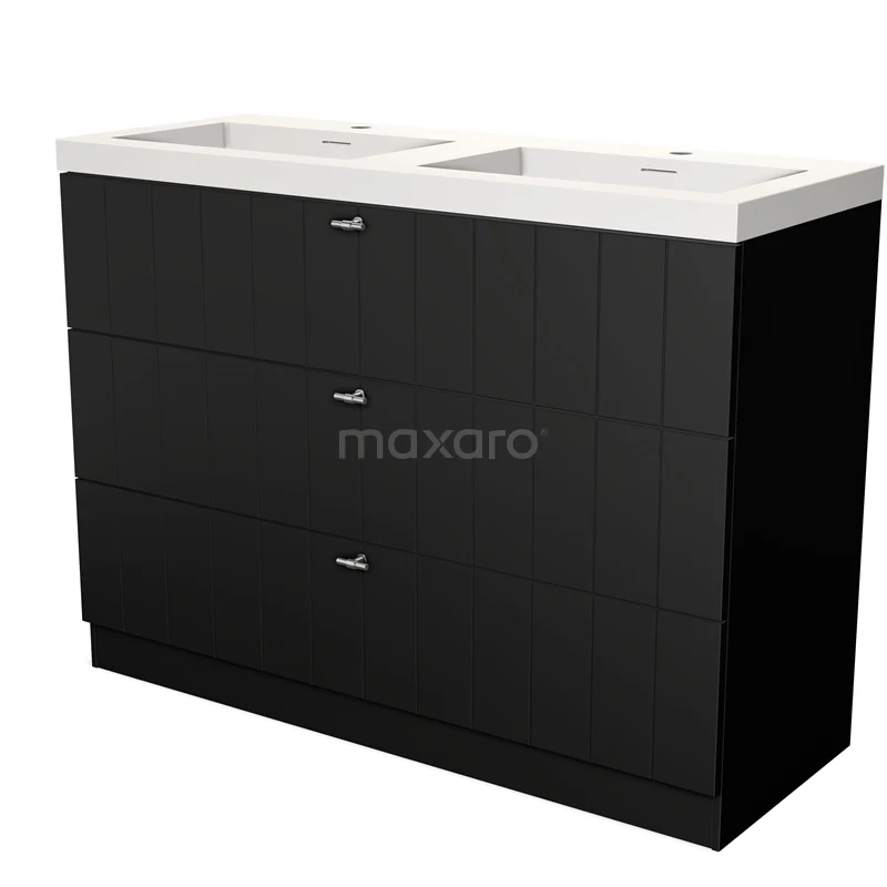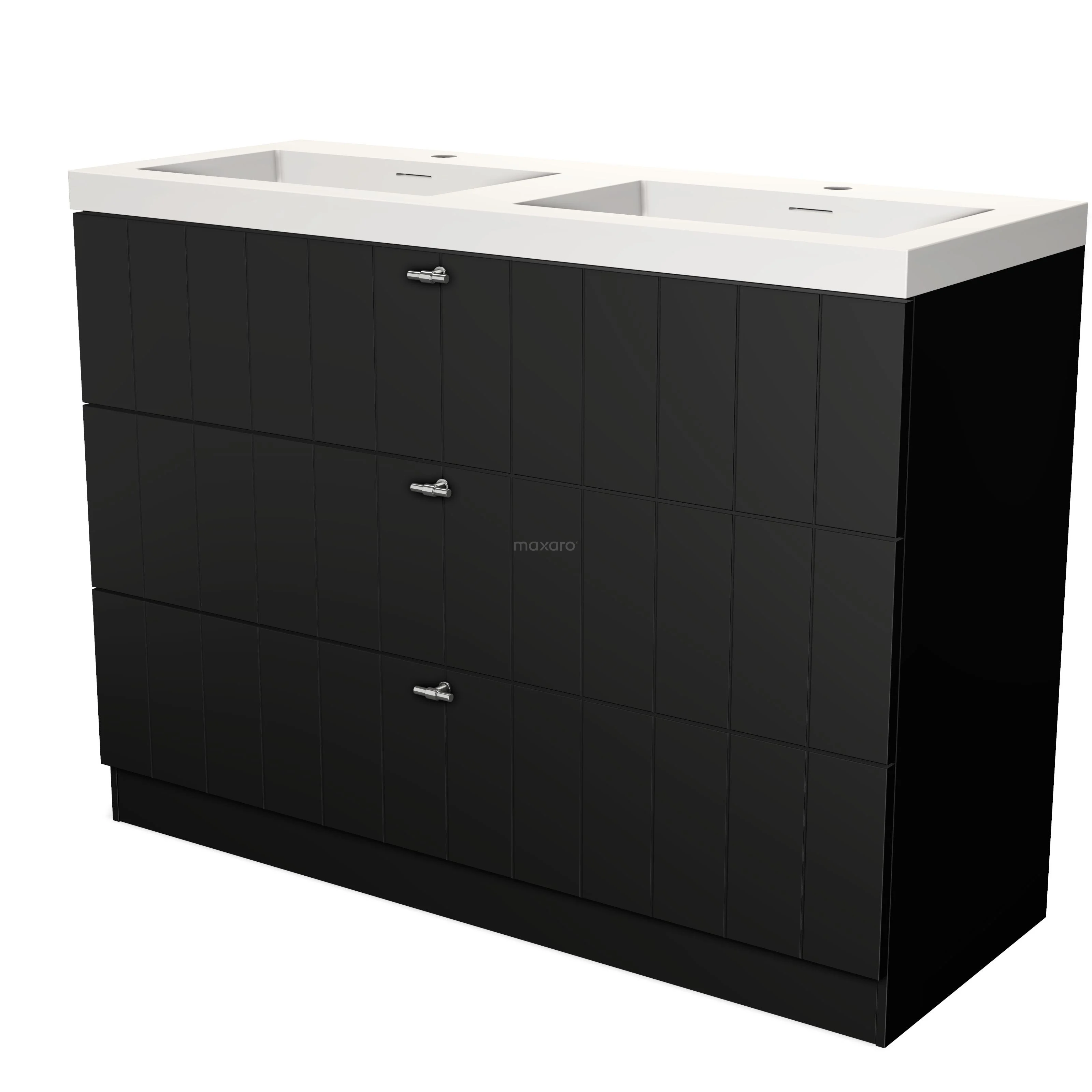 Modulo Vanity units with basin | 120 cm Matte black Slat front Solid surface 3 standing drawers