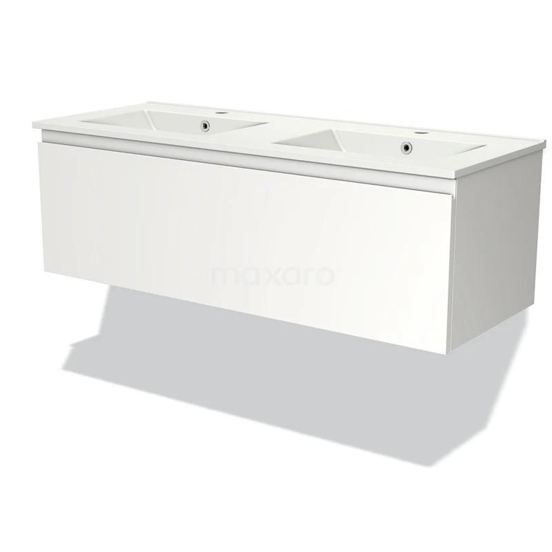 Modulo Vanity units with basin | 120 cm Matte white Handle-less front Ceramic 1 drawer