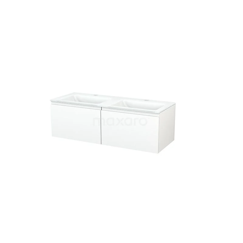 Modulo+ Vanity units with basin | 120 cm Matte white Handle-less front Glass 2 Side-by-side drawers