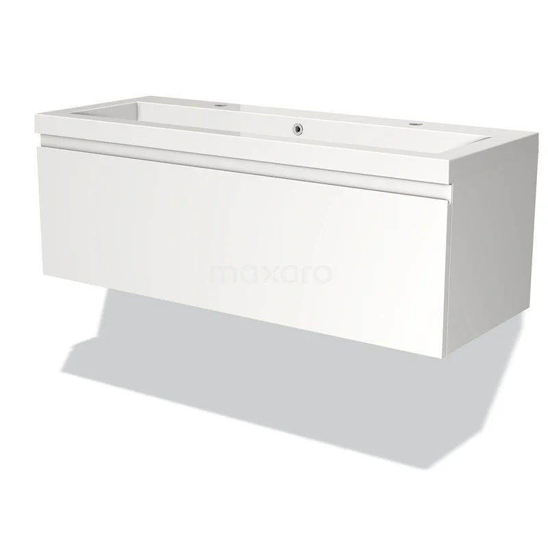 Modulo Vanity units with basin | 120 cm Matte white Handle-less front Mineral marble 1 drawer