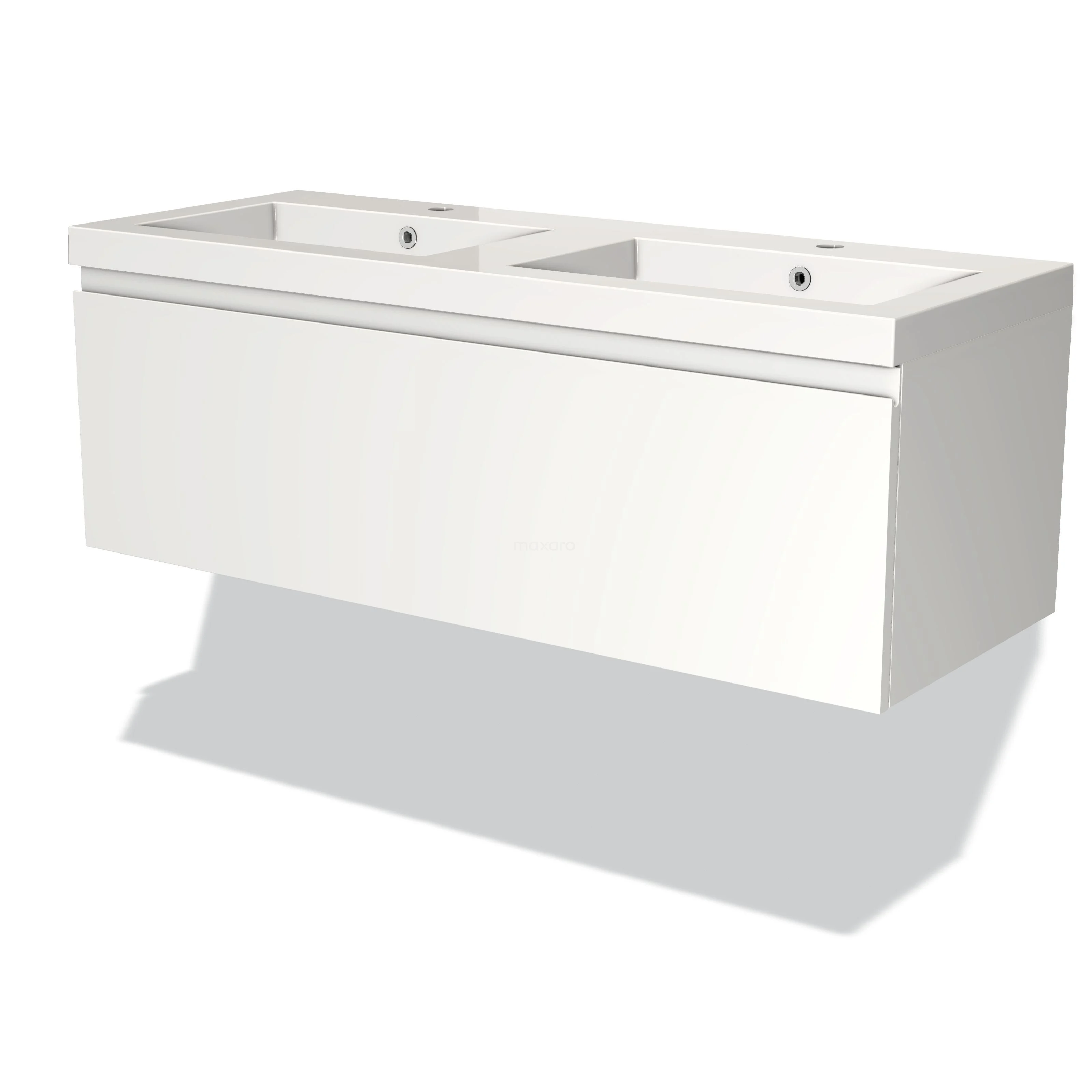 Modulo Vanity units with basin | 120 cm Matte white Handle-less front Mineral marble 1 drawer