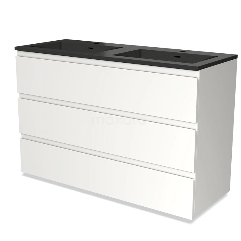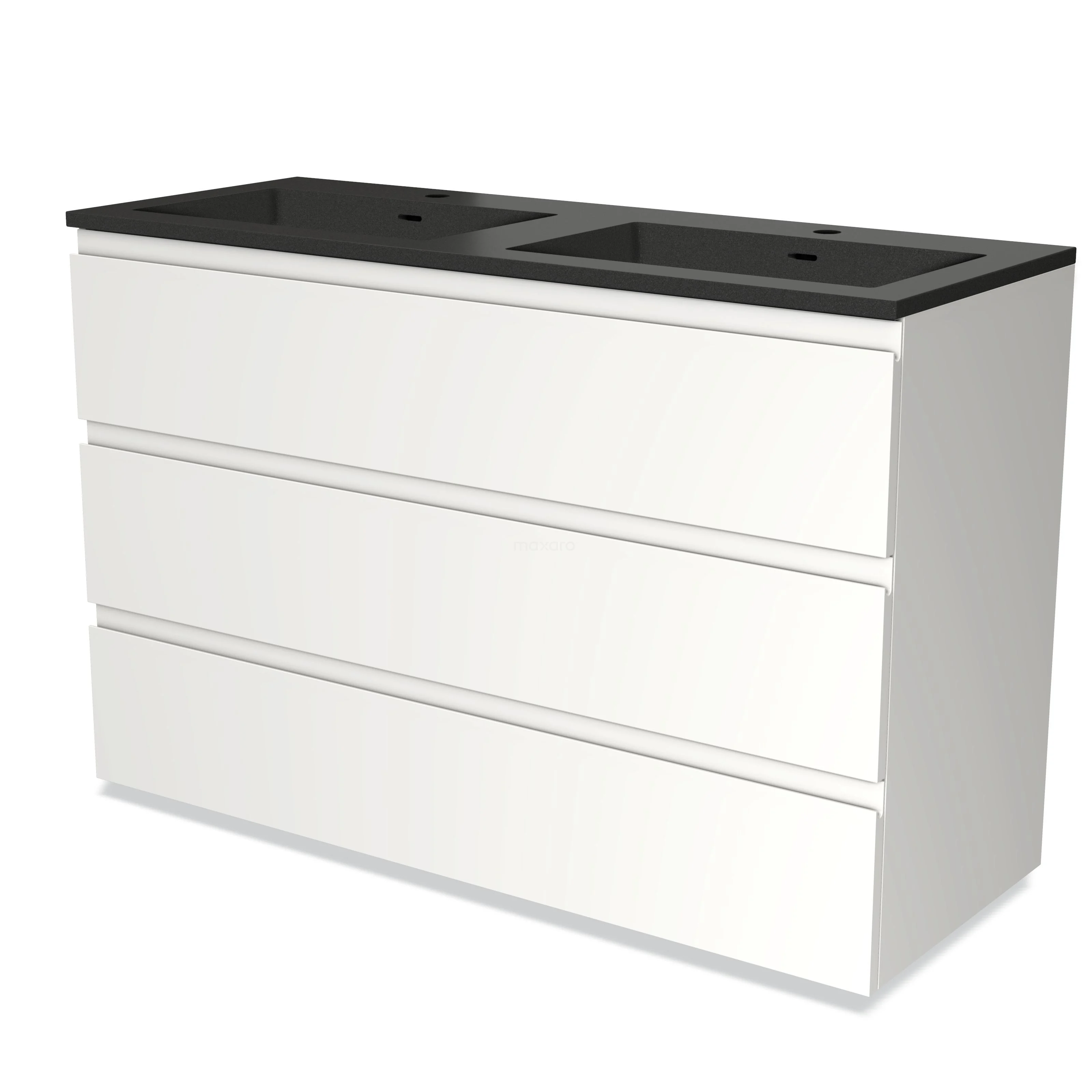 Modulo Vanity units with basin | 120 cm Matte white Handle-less front Quartz 3 drawers