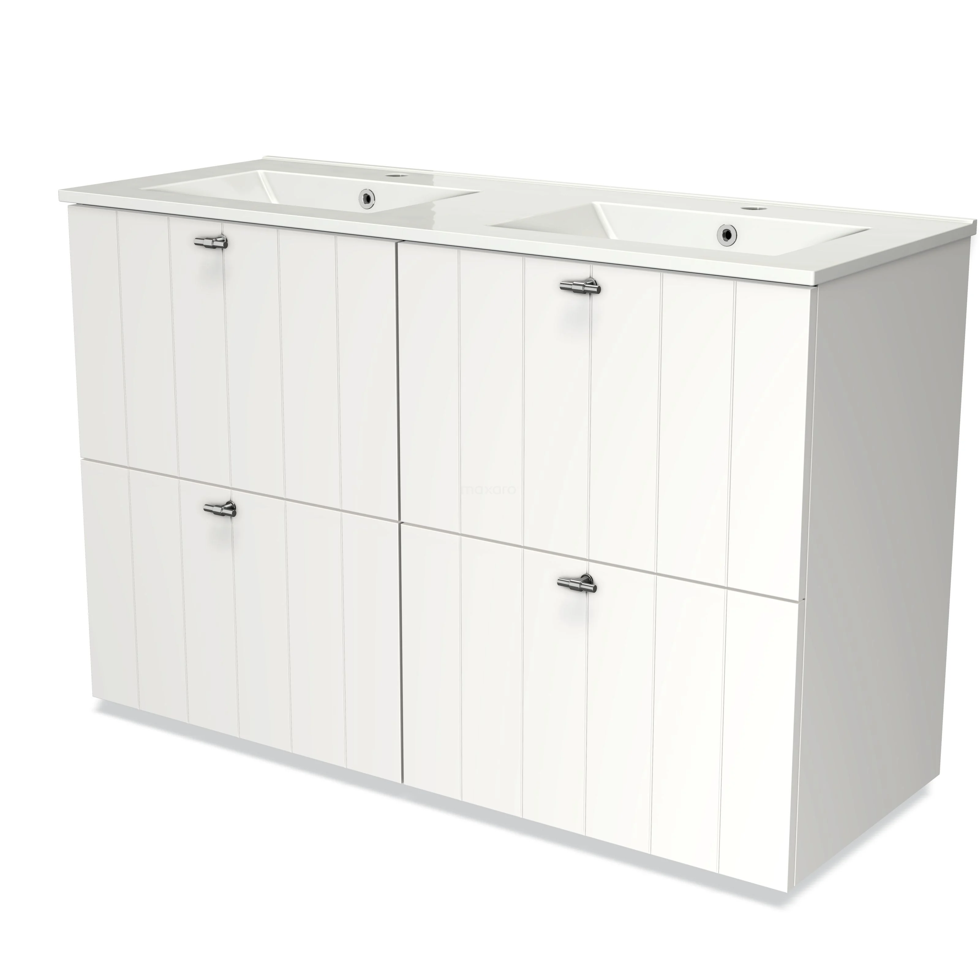 Modulo Vanity units with basin | 120 cm Matte white Slat front Ceramic 4 high drawers