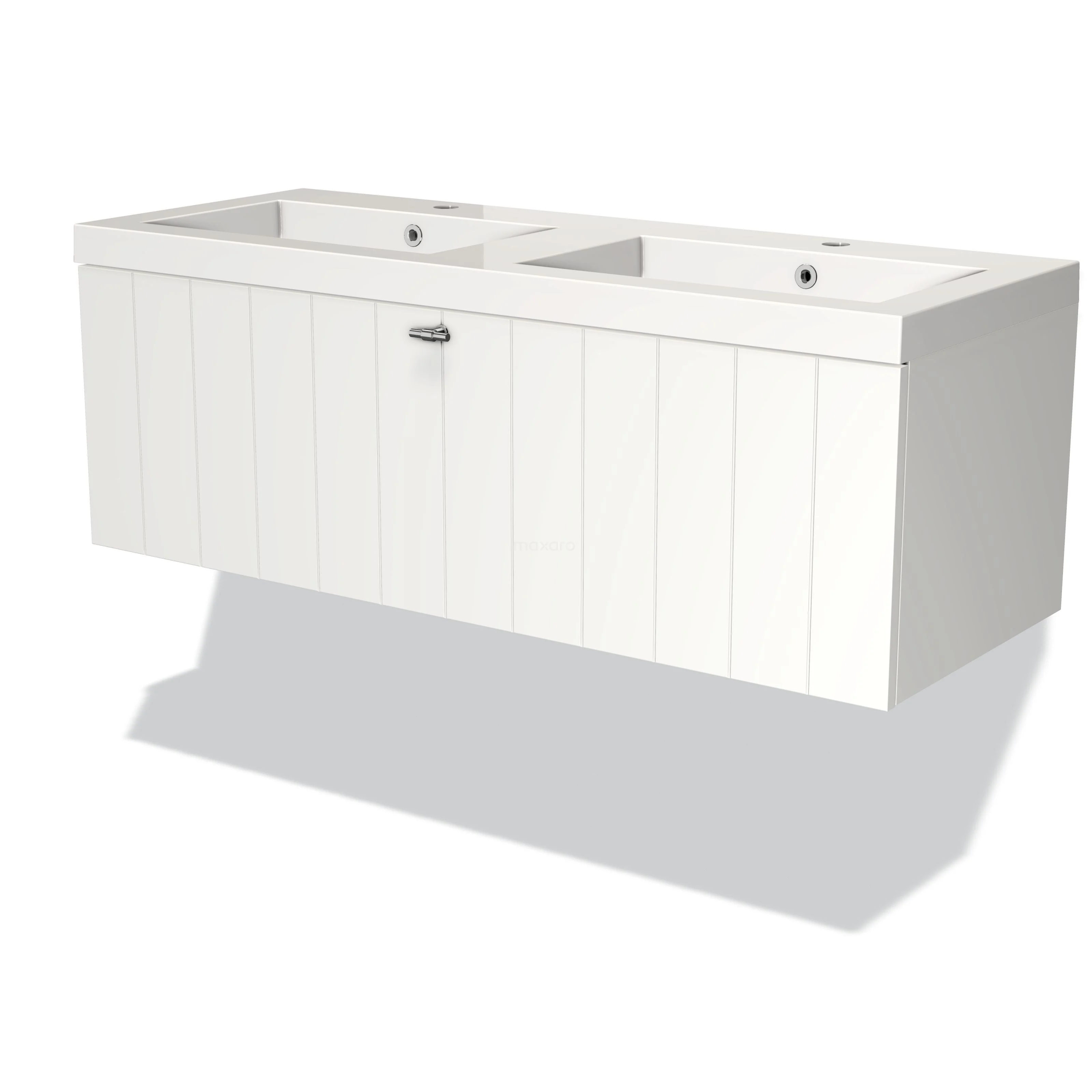 Modulo Vanity units with basin | 120 cm Matte white Slat front Mineral marble 1 drawer