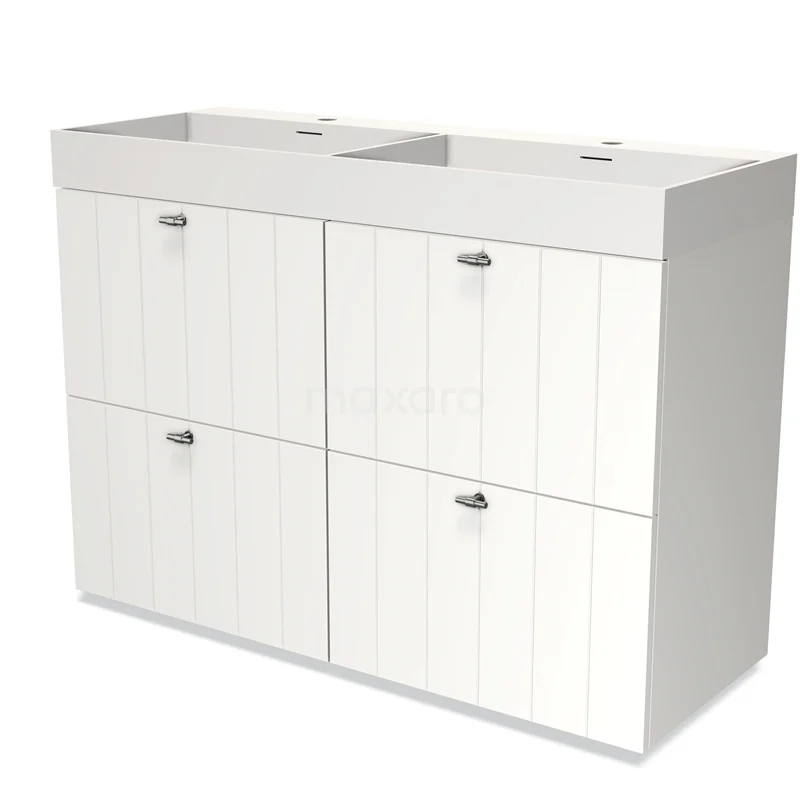 Modulo Vanity units with basin | 120 cm Matte white Slat front Solid surface 4 high drawers
