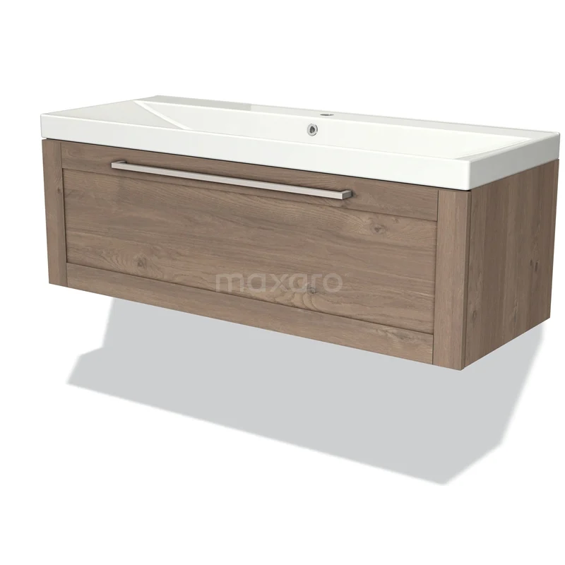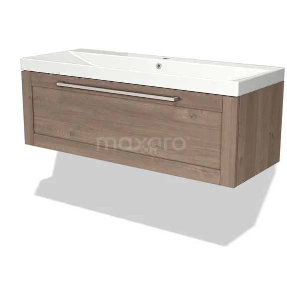 Modulo Vanity units with basin | 120 cm Mid brown oak Frame front Ceramic 1 drawer